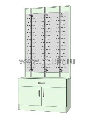 Витрина для 45 оправ, оборудована замками. В комплекте зеркало, 1 выдвижной ящик