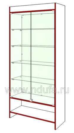Витрина из ЛДСП с высоким накопителем, 4 стеклянные полки, стекл. дверки на замке